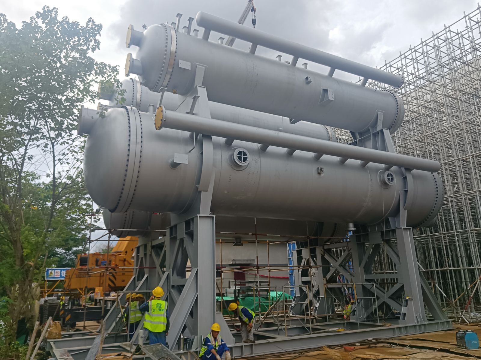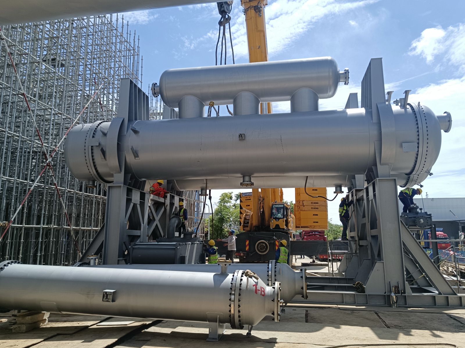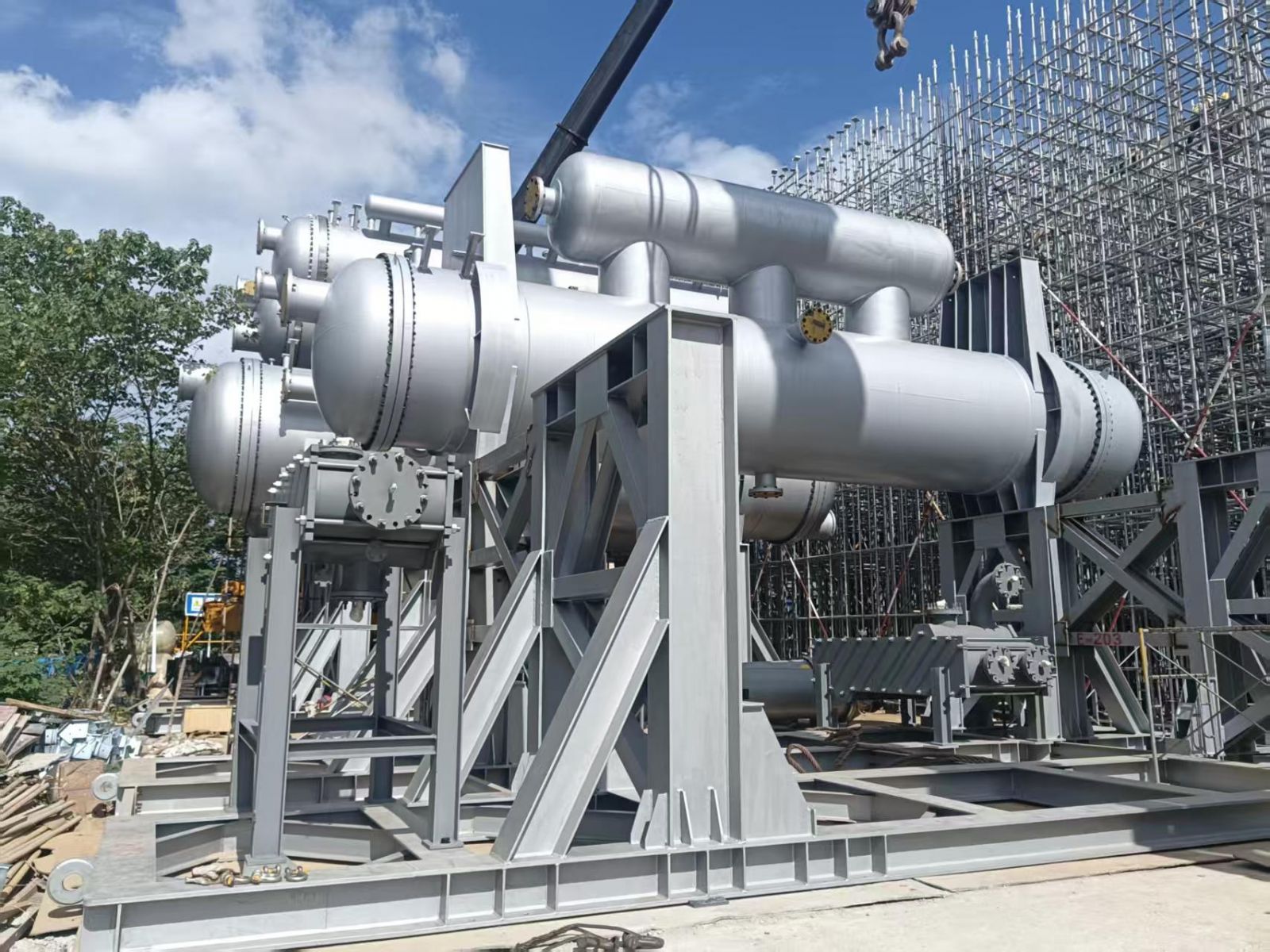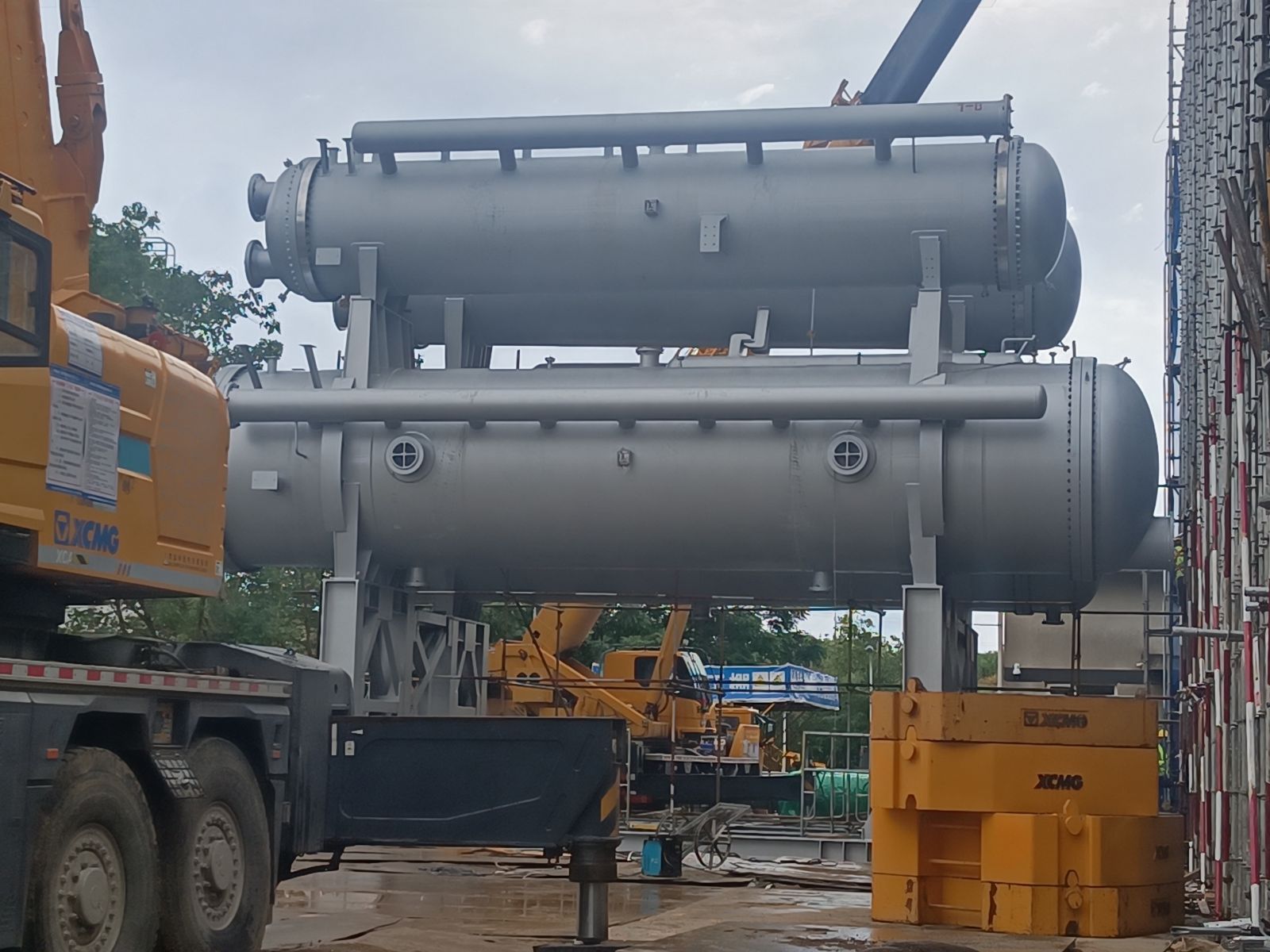我公司為普泛能源定制的萬千瓦級低品位熱源制冷制冰設備,現場實現一次吊裝成功。該設備單套總噸位達500噸,兩套設備均一次性精準就位。其可廣泛應用于乙二醇、合成氨、綠氨、半導體、電廠等多個領域。