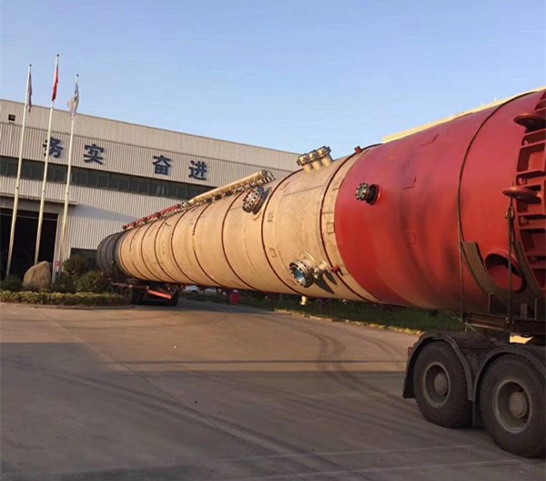 我公司制造重170噸,長45米,直徑3.6米無催化劑稀硝酸回收系統硝酸凈化反應器(塔)制造完成,順利發往內蒙。