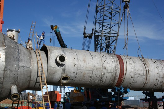 The reabsorber with height of 100m and diameter of 5.7m is the largest and highest stainless steel reaction tower in China.